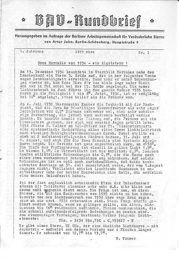 BAV Rundbrief 1/1955 Seite 1