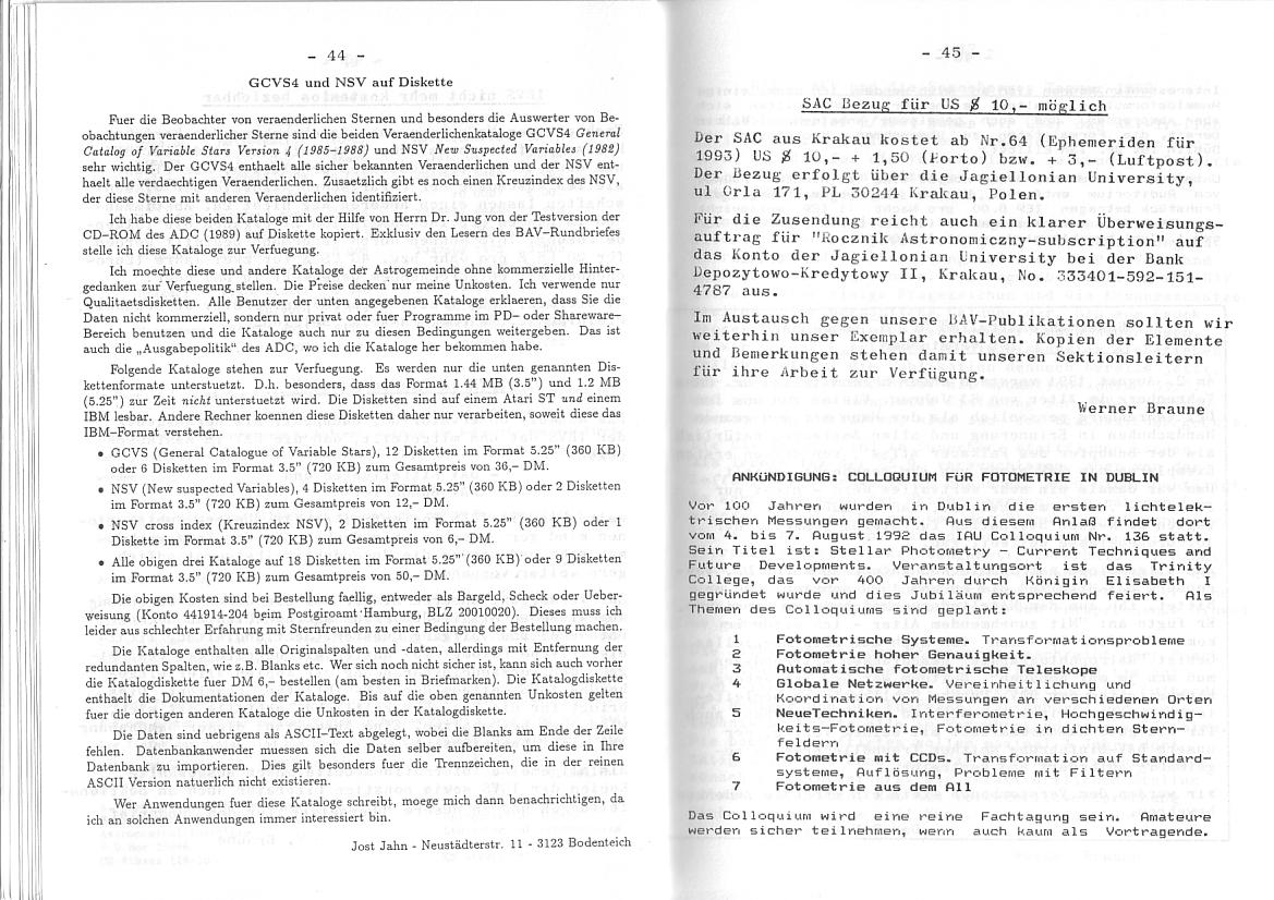 BAV Rundbrief 1/1992 Seite 44-45