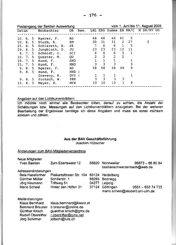 BAV Rundbrief 3/2005 Seite 176