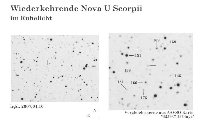 Hand-Günter Diederich nahm U Sco im Jahr 2007 auf, als sie mit 18.1 mag im Minimum lag: